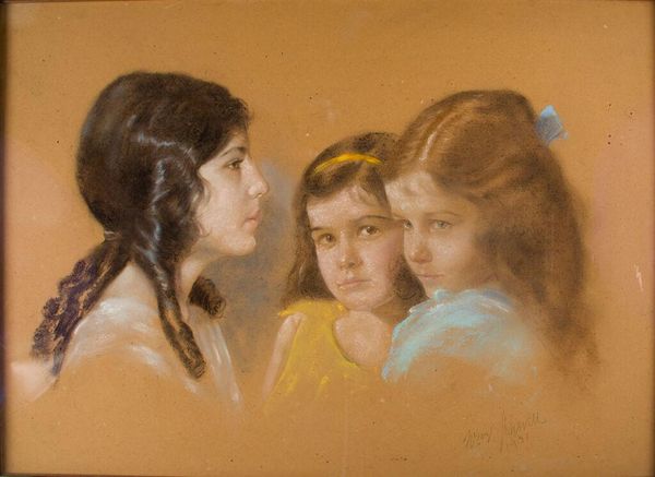 Jacek Malczewski painted “Two Girls” in 1906, using oil on cardboard, a departure from traditional canvas. The choice of materials here is telling. Oil paint, a common medium since the Renaissance, allows for rich colors and smooth textures. The cardboard, however, provides a stark contrast. Its absorbent nature limits the paint's fluidity, resulting in a flatter, more matte surface. The visible texture of the cardboard also adds a layer of rawness, almost like a sketch rather than a highly finished painting. Malczewski's technique involves loose brushwork, creating soft edges and blended tones. The limited palette further enhances the subdued mood. The girls are painted with an air of innocence and introspection. Their simple clothing and the muted background suggest a life removed from the industrial bustle. The painting's power resides in this simplicity. Malczewski elevates everyday materials and understated techniques to create a work that is both visually striking and emotionally resonant, reminding us that artistic expression exists in the realm of craft and fine arts.