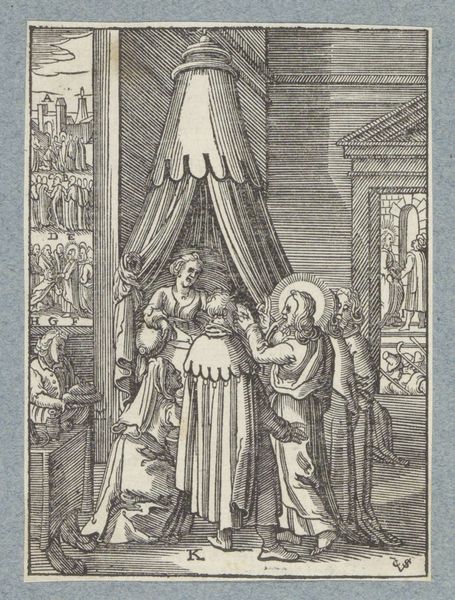 Christoffel van Sichem II created this woodcut print depicting Christ telling his disciples about his coming death and resurrection. Sichem was working in the Netherlands amidst the Reformation, a period defined by religious and political upheaval. Prints like this one played a crucial role in disseminating religious ideas, which had profound social consequences. Christ’s gathering with his disciples is set within a geometric interior space. To the left, we see a landscape and building exterior through an open door. Above the group, there is a framed image of Christ resurrected. Van Sichem was a prolific printmaker who made both religious images and portraits of political figures like William of Orange. His prints helped shape public opinion in a time of great change. The disciples appear to be in shock from the premonition, a reminder of the powerful and sometimes devastating role of faith in our lives.