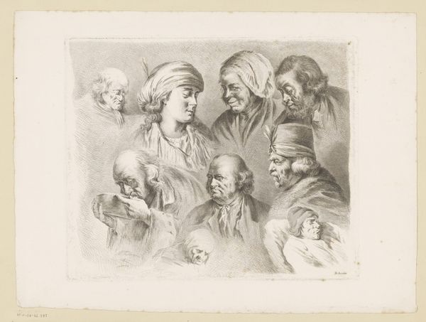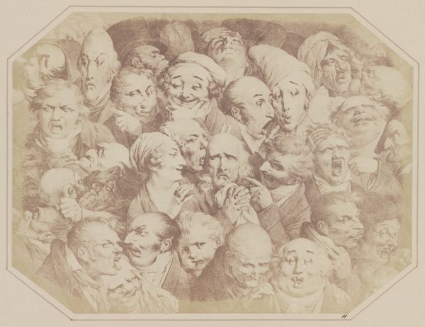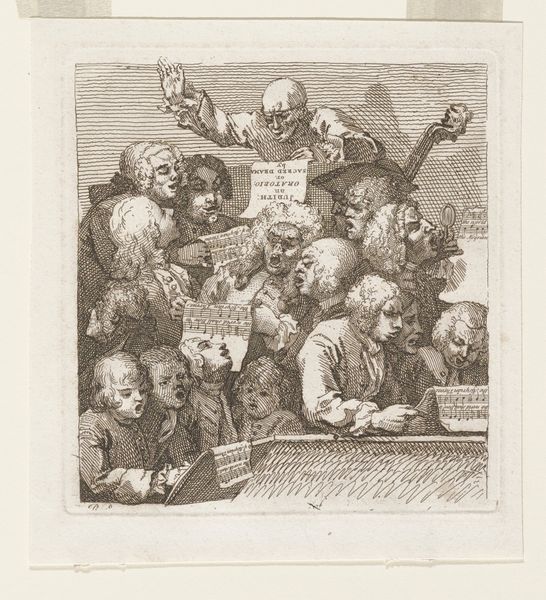 Richard Purcell made this print called 'The Company of Undertakers' in London, sometime in the mid-18th century. Here, we see a collection of men smoking pipes, some peering over a crenelated wall. This image offers us a window into the visual culture of Georgian England and its satirical traditions. Satire was a popular way to comment on social and political issues and it often targeted specific professions or social groups, and this print is no exception. It depicts the undertakers as a group of self-satisfied, even grotesque figures, perhaps suggesting the artist's critique of their profession. The wigs and pipes act as markers of status and masculinity, while the act of smoking together implies a shared purpose. For more insight into this print, we can consult sources on 18th-century social history, visual culture, and the history of satire, which will deepen our understanding of this image and the culture that produced it.