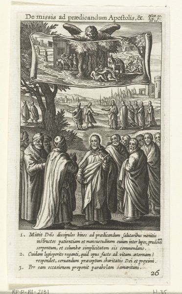 This engraving by Boëtius Adamsz. Bolswert captures a biblical scene, presenting a highly structured composition of figures, landscape, and symbolic elements. The use of line, contrast, and relative scale is striking. The foreground teems with attentive listeners clustered on the shore, their upturned faces a study in focused engagement. Christ, set apart in a boat, occupies the compositional center, while the background displays scenes embodying the ‘Parable of the Sower’. The upper registers contain small framed images depicting a man sowing seeds in different terrains, while a devil figure lurks. Bolswert employs a semiotic system that echoes early religious instruction. The images serve as signs, directing viewers to interpret the depicted narratives. The artist destabilizes traditional notions of pictorial space by combining narrative and symbolic elements. Through this structure Bolswert prompts a meditation on faith, reception, and the dual nature of earthly existence.