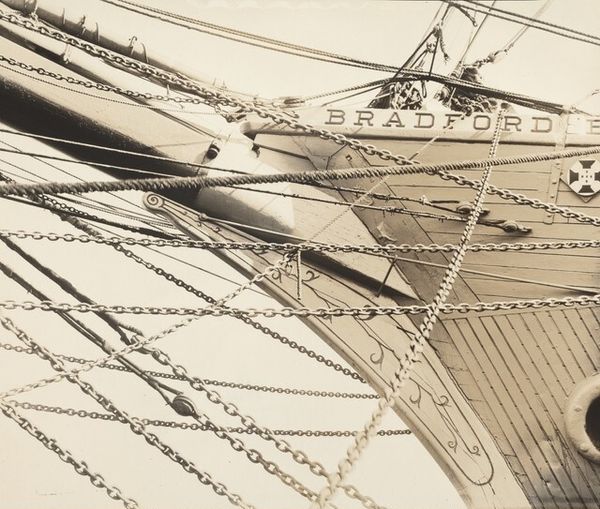 Editor: We are looking at Josef Breitenbach’s photograph, “Wheels,” created in 1942. The monochromatic composition and the upward angle make the wheels looming and kind of menacing, almost like industrial ghosts. What do you make of this imagery? Curator: It's compelling, isn't it? The wheels themselves are powerful symbols, especially when taken out of their original context. Wheels traditionally represent progress, movement, industry – the very engine of society. But here, they are suspended, motionless, almost defeated against the backdrop of war, captured during 1942. Does this still motion evoke some of the more disturbing contexts from World War II, perhaps referring to the wheel of history which can turn for good or bad? Editor: That’s interesting. The image also has a geometric quality, which reminds me of the modernism movement. Does the artistic style alter or reinforce its cultural symbolism? Curator: Absolutely. Modernism often used geometric forms to represent the industrial age and a move away from traditional values. By photographing these wheels with such starkness, Breitenbach might be suggesting the unfulfilled promise or even the destructive potential of that era's utopian visions. Does it strike you as critical or celebratory? Editor: Perhaps more critical, the rust and monochrome palette gives the piece an uncanny mood. It makes me consider the psychological weight these everyday industrial symbols have. Curator: Precisely! Photography, in his hands, becomes a tool to tap into our collective memory. The mundane transforms into something deeply unsettling, doesn’t it? I appreciate how this shifted my perception from the individual parts to the cultural continuity in our interpretation. Editor: I agree! I’ll definitely remember to think about artistic style in the context of these types of symbols moving forward.