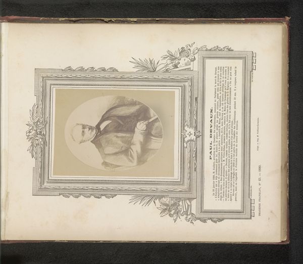 This is a reproduction of ‘Le Mal Saint Martin’ by Charles Soubre. The monochromatic print presents a composition framed by ornate, decorative borders. The image is composed of a central depiction with an adjacent rectangular text panel, both surrounded by detailed floral and geometric designs. Note how this structured layout organizes the narrative and textual elements into a unified visual field. This emphasis on order reflects the broader Enlightenment values of reason and categorization. The image’s layout also engages with semiotic systems. The framing devices act as signs, delineating the artwork from its surroundings and signalling its status as a representation. This self-awareness points to a poststructuralist critique of representation, destabilizing the idea of art as a transparent window onto reality. Consider how the deliberate arrangement and framing of the image invites viewers to question the structures that shape our understanding of art and history. In this way, the artwork's formal qualities become integral to its larger cultural and philosophical significance.