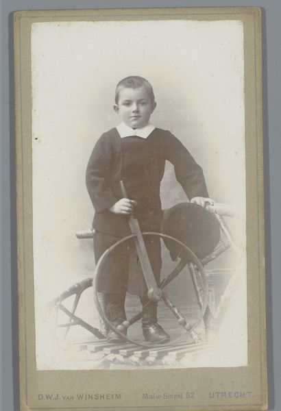 This is a photograph, likely dating to the late 19th or early 20th century, made at the Atelier Herz. The image is a simple portrait of a young boy in a sailor suit, holding a hoop. The photographic process itself is key here. These kinds of images were made possible by advances in chemistry and optics, but also by a growing culture of consumerism. Photography studios like Atelier Herz offered a service, catering to a desire for personal mementos and social documentation. The sailor suit, too, speaks to industrial production and a culture of childhood that was increasingly shaped by manufactured goods. Consider the labor involved: from the factory workers who produced the photographic materials and the boy’s clothing, to the photographer who posed the child and developed the print. In a seemingly simple image, we see a convergence of technology, fashion, and social practice, all underpinned by the burgeoning forces of industrial capitalism. Thinking about this context helps us to look past the image itself, and reflect on the layers of making that constitute its deeper meaning.