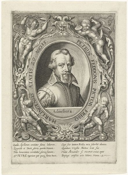 This is Joannes Sarragon's portrait of Maurits, Prince of Orange, an engraving that encapsulates the political and personal identities intertwined in the Dutch Golden Age. Consider the weight of representation here; Maurits isn't merely depicted, he's strategically presented. The intricate details of his attire speak to power and status, while the Latin inscriptions frame him within a historical lineage of military leaders. How much is this image about conveying his individual self versus solidifying his position within the complex socio-political landscape of the time? Princes like Maurits were central figures in shaping the cultural and political identity of the Netherlands. What does it mean to construct and convey authority through portraiture? This image presents a complex figure navigating the intersections of power, lineage, and personal identity in a formative period of Dutch history.