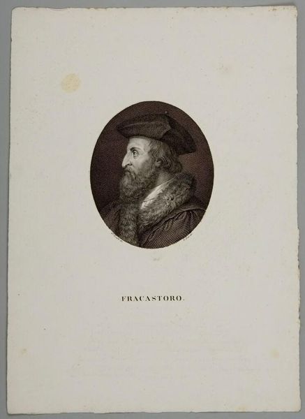 Curator: This engraving, held at the Harvard Art Museums, is titled "Paolo Manuzio," created by Felice Zuliani, who passed away in 1834. Editor: Immediately, I'm struck by the solemnity. The tight cropping and monochrome lend a formal, historical weight. Curator: Indeed. Note the profile view, a classical convention employed to convey dignity and permanence. The meticulous rendering of his beard and the texture of his hat add layers of visual information. Editor: Right, like we're meant to see him as a learned figure, but what I read is a kind of weariness in his gaze. Is it just me? Curator: Perhaps not. The image resonates with the humanist tradition, where portraiture served not only as documentation but also as a reflection on character and intellect. Editor: It's amazing how much personality can be captured in what is essentially a monochrome study. It makes me wonder about the man beneath the symbol. Curator: Precisely! It invites us to consider the interplay between public persona and private experience, a tension that continues to fascinate. Editor: I'll definitely be pondering that on my way to the next piece.