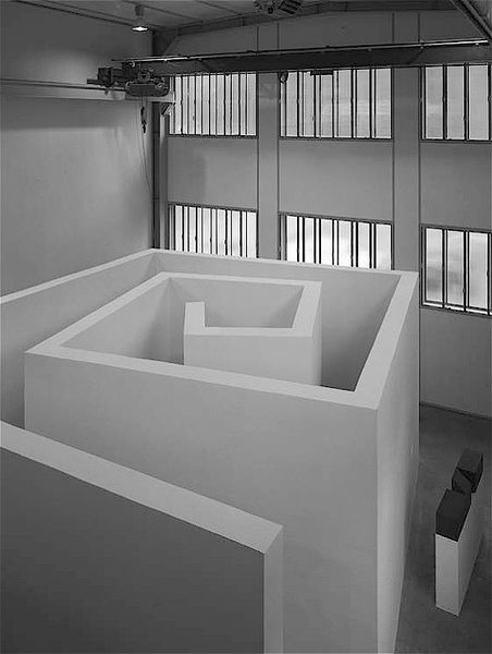 Editor: This is Sol LeWitt's "Wall Drawing #260" from 1975. It appears to be made from graphite on a dark wall, with various geometric and curved lines filling the space. It's quite striking, almost like a massive chalkboard filled with diagrams. How should we approach interpreting a work like this? Curator: Look closely at the graphite. Its application isn't about individual expression but about execution of a set of instructions. The labor becomes the artwork itself. The social context of conceptual art valued the idea over the object, thus de-emphasizing the traditional role of the artist as a skilled hand. It brings into question what really matters. Do you agree? Editor: So, the instructions themselves, the *concept*, are more crucial than the finished appearance? Does that challenge the very definition of art? Curator: Exactly! And consider the materials. Graphite is simple, readily available, and associated with drafting and everyday mark-making. Its demotic quality challenges the art world's reverence for precious materials. Are we consuming art, or the idea of it? Also think, who actually executed this work? Is it really LeWitt's? Editor: Right, I read that his wall drawings were often executed by others, following his directions. So, labor is decoupled from artistic creation, and yet, without labor, there is no visible manifestation. I’m beginning to see how it redefines traditional artistic roles and highlights the value of production itself, of a team effort that can bring these instructions to life. Curator: Precisely. The lines might appear simple, even childlike, but they result from a complex system of instructions, and that raises questions around consumption and commodification, wouldn't you say? Editor: I see your point! It really reframes how we appreciate art by directing us towards the material conditions and the broader social context in which it was created. Thank you. Curator: My pleasure. And always remember to look for those tensions between idea and material.
