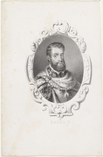 This is a reproduction of an anonymous print depicting Charles IX, King of France. The sepia tones and the print's small scale create a sense of distance. Framed by delicate lines, the composition focuses on the figure's bust, emphasizing his ornate attire. Note the ruff collar, the pearl strands, and the jeweled cap. These are not merely decorative; they function as signifiers of power and status. The artist uses line and shadow to create a structured hierarchy. The King’s gaze, though fixed, is softened by the print’s tonal range, inviting contemplation on the nature of portraiture itself. This challenges any fixed meaning of royalty. Consider how the print's form—its lines, tones, and composition—works to create a discourse about power, identity, and representation. It’s a site of ongoing interpretation, reflecting the shifting values attributed to historical figures across time.