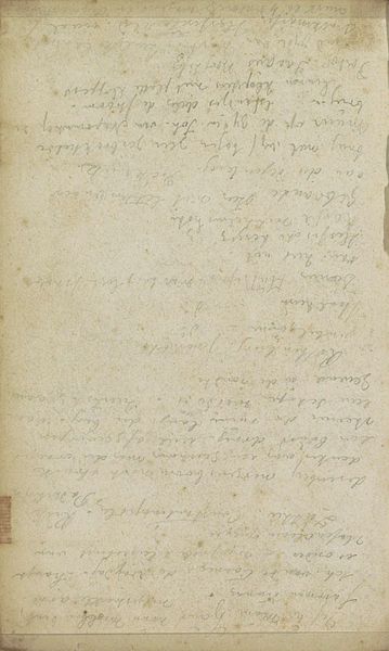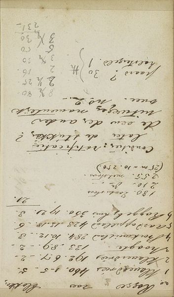 Curator: Looking at "Notities," created by Johannes Tavenraat between 1854 and 1868 and held here at the Rijksmuseum, I'm immediately struck by the sense of intimacy it evokes. It’s such a direct glimpse into an artist’s thought process. Editor: My first impression is a kind of nostalgic quietude, the faded ink hinting at the passage of time. It feels almost like uncovering a secret. What exactly are we looking at here? Curator: This drawing on paper is essentially a page from an artist's notebook, filled with Tavenraat's observations and reflections. The notes themselves could be related to various projects, names, locations, or perhaps financial records - it's challenging to say definitively. We see names of people and places that, back in their time, definitely must have stirred emotions. Editor: It is amazing how you said that these records have stirred emotion: names have deep psychological undercurrents, holding layered memories and associations of particular people and places that, because they cannot be easily recalled, only emphasize our human condition. Do you think it's reasonable to describe this as an element of Romanticism in its aesthetic appeal, considering it seems more utilitarian rather than formally artistic? Curator: It's definitely more document than polished work of art, and I can see what you mean about its practical intention versus Romanticism. The romantic element perhaps lies less in the explicit intention of Tavenraat, and more in our perception. Romanticism valued personal expression, it valued emotion and intuition, it certainly embraced the fragment. Tavenraat's random notations let us imagine the moment the image was rendered, its potential purposes, and its inherent symbolism related to daily activities that become more evocative and, to a degree, poetic with the passing of time. Editor: In this sense, an object gains complexity. This also influences how a contemporary public interacts with this artwork, as part of what has come to be defined as the canon of Dutch Golden Age Art in museum collections. The museum space can indeed act as a bridge to see the value of the symbol through new forms of appreciation that expand collective knowledge and public perception. Curator: I think you’ve articulated it wonderfully. There's a quiet strength in objects that once might have been disregarded but offer the gift of resonance when we embrace a deeper analysis and understanding. Editor: Precisely, a dialogue between time, intention, and enduring cultural memory.