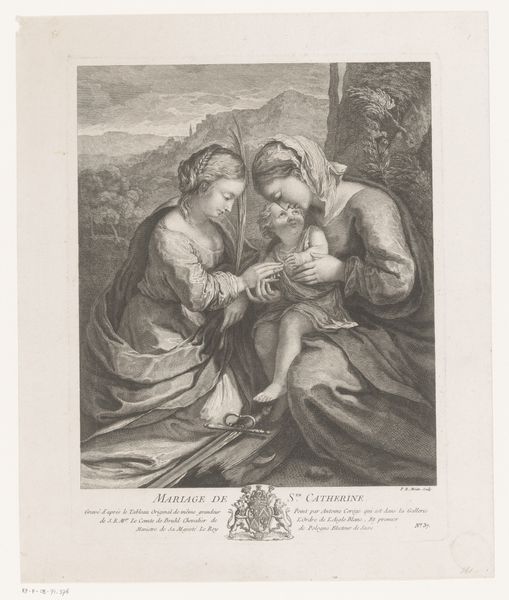 Antonio Zaballi created this print, "Mystical Marriage of Saint Catherine," in Italy around the late 18th century. In it, the Virgin Mary holds the Christ child, who places a ring on the finger of Saint Catherine. The imagery here is important. The mystical marriage of Saint Catherine was a popular subject during the Counter-Reformation, meant to symbolize Christ’s bond to the Church. Zaballi’s placement of the figures in a verdant landscape seems intended to stress the Church’s earthly power, its capacity to mediate between the divine and the terrestrial. The imagery is idealized, presenting a vision of harmony and order that arguably papers over the social and political tensions of the time. As art historians, we can use sources like period literature, religious texts, and social histories to further unpack the meanings and contexts embedded in Zaballi’s print. Art never exists in a vacuum; it’s always shaped by and commenting on the world around it.