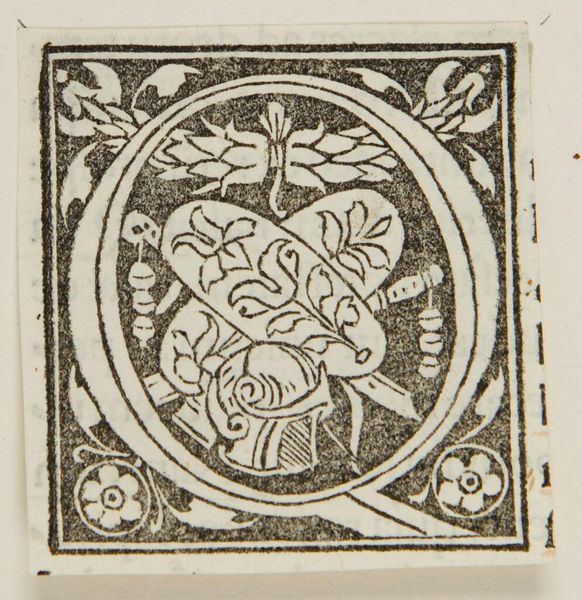 Curator: The Harvard Art Museums present to you "Letter L", a compelling artwork by an anonymous artist. Editor: Striking! The stark black and white contrast creates an immediate graphic punch. It feels both ornamental and strangely architectural. Curator: Indeed. The image presents the letter "L" filled with botanical imagery. Notice how the rigid structure of the letterform is softened by the organic curves of the leaves and fruit. The letter itself becomes a container. Editor: Yes, and the laden basket overflowing within the 'L' suggests abundance—a cornucopia contained, controlled, but still burgeoning with life. It recalls ancient Roman symbols of prosperity. Curator: The composition certainly employs a balanced asymmetry to suggest order, but the minute imperfections of the printmaking process offer a textural richness. Editor: For me, the anonymous nature of the artist adds a layer of mystery. It invites speculation about the piece's original function and cultural significance. Curator: It's a fascinating exploration of form and symbolism. Editor: A potent little capsule of history and artistry.