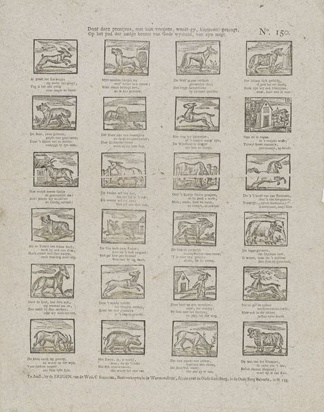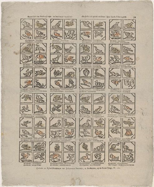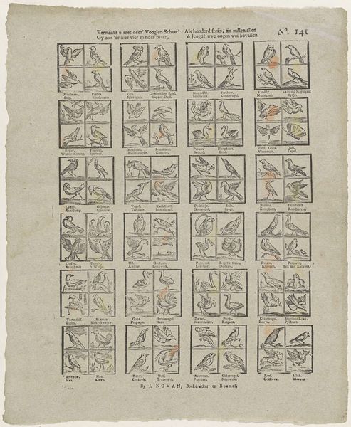 This print, made by Johan Noman, presents a grid of animals, each neatly boxed. The Dutch Golden Age, during which Noman lived, was marked by burgeoning scientific curiosity, and a belief in the power of observation and categorization. This print emerges from that context, aiming to educate its viewer about the natural world. However, it also reflects a colonial gaze, a desire to classify and control. Consider the animals depicted: some are familiar, others exotic, hinting at the vastness of the Dutch empire and its global reach. How might these images have shaped Dutch perceptions of the world and their place within it? What emotional impact might these images of ‘known’ and ‘unknown’ animals have had on viewers, fostering curiosity, perhaps, but also reinforcing a sense of cultural and racial superiority? This print serves not only as a window into the natural world, but also into the social and political dynamics of its time.