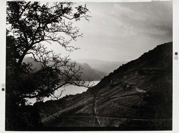 Curator: Robert Adams' "Interstate 10, east edge of Redlands, California," a gelatin silver print from 1978. I see a pale sky, a hillside scarred with faint lines, and the suggestion of a highway ribboning along its base. What catches your eye first? Editor: The quietness. Despite knowing that an interstate and likely a city are nearby, there’s a stillness, an almost melancholic quality to the light and the somber palette. The scarred hill makes me think of wounded landscapes. Curator: Precisely! Adams photographed throughout the American West, particularly suburban Denver and Southern California, often capturing the tension between the built environment and the natural one. Editor: It's more than tension, though. Look at the placement of the highway; it's an imposition on the landscape, literally cutting across it. Adams implicates consumer culture’s environmental degradation, doesn't he? I wonder about issues of environmental racism when highways cleave through communities. Curator: It's interesting you bring up race. Adams’ work can also be seen as engaging with the legacy of landscape photography traditions in America, critiquing its mythologizing tendencies to make way for questions concerning our social and ecological ethics. It is a far cry from the optimism that propelled those 19th-century landscape photographers! Editor: Absolutely. Those sweeping vistas served the expansionist dreams of the time, obscuring its violence. Adams strips away the grandeur to confront the ordinary, everyday impact of progress, so-called. The monochrome further accentuates the somber mood, underscoring loss. Curator: You can almost smell the dryness of the vegetation and the exhaust fumes competing with it. His unflinching vision of the un-picturesque possesses a stark beauty, inviting introspection and questioning of our relationship with the world around us. Editor: Adams isn't merely documenting the effects; he’s asking us to consider our complicity. Whose lives and land are deemed expendable for progress, for connectivity? Curator: These quiet photographs shout the loudest. He asks us: is this really progress if we continue to extract at this rate? I come away contemplative, as usual. Editor: As do I. Adams gives us a scene, a reality, not an answer, making his photograph an enduring prompt to be better stewards.