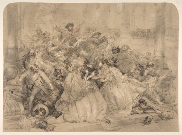 Rombout van Troyen created this drawing, Calvary, to depict the crucifixion of Christ. See how the cross, though central, is not yet upright. Instead, it's being hauled and pushed, a symbol of burdened humanity. The figures strain, their muscular bodies reminiscent of classical sculptures, yet their task is imbued with Christian symbolism. Consider the serpent-entwined staff—an ancient symbol, it appears in varied contexts, from Hermes's caduceus to the Rod of Asclepius, representing healing and knowledge. Here, it gains a twisted irony. The serpent, traditionally a symbol of wisdom and medicine, is now juxtaposed with the ultimate sacrifice of Christ, highlighting a moment of profound change and suffering. The image conveys a primal emotional force, a collective memory of pain. The act of bearing a heavy load—a cross, in this instance—reverberates through history. The figure, bent and strained, recurs in various forms: Atlas bearing the world, or laborers in ancient Egyptian friezes. The symbol is cyclical, resurfacing and evolving, reminding us of the continuous threads of human experience woven through time.