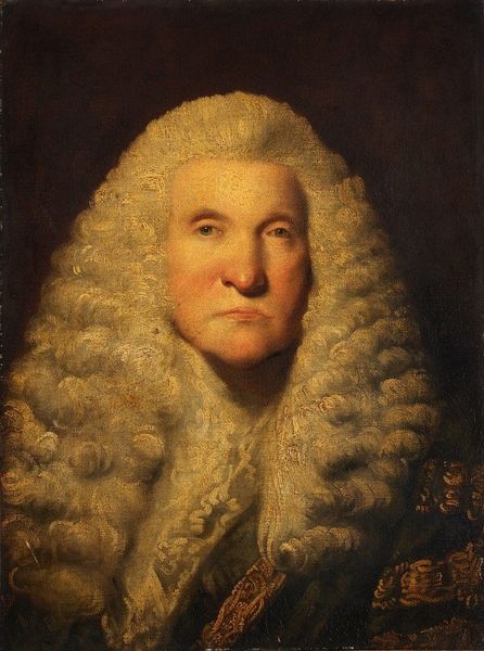 Editor: So here we have Jean-Étienne Liotard’s "Portret van Willem Bentinck van Rhoon," painted around 1755-1756, using oil paint. What strikes me is how the red of his coat really dominates the painting; it feels almost like a status symbol, demanding attention. What do you see in it? Curator: For me, this piece isn't simply about aesthetic representation but the entire system of production and consumption that it embodies. That intense red isn't just pigment; it’s evidence of global trade networks bringing dye, potentially cochineal or madder, to Europe. The wig itself reflects elaborate processes and a whole market dependent on the creation of wigs, where does that market originate and who gets access to those materials? Editor: I hadn't really considered that! So, the coat tells a story beyond just wealth? Curator: Absolutely. Look closely at the buttons, the way the fabric is rendered. Each element involved craftspeople with specific skills, whose labor contributed to this overall image of aristocratic power. How might those craftspeople be situated socially? Were they paid fairly for their skills, were they indentured? Editor: That really shifts my understanding. I was focused on the man himself, but now I'm thinking about everyone who contributed to creating this image of him. Curator: Exactly! Consider also the canvas itself, and the preparation of the oil paint; all raw materials gathered from far away. It encourages us to challenge assumptions about art being purely the creation of an individual genius. Editor: It's amazing how much history is embedded in the materiality of the portrait itself. Now when I look at the art I wonder what these materials represent. Curator: Indeed! Recognizing the material context helps us think critically about power, labor, and consumption in the 18th century.