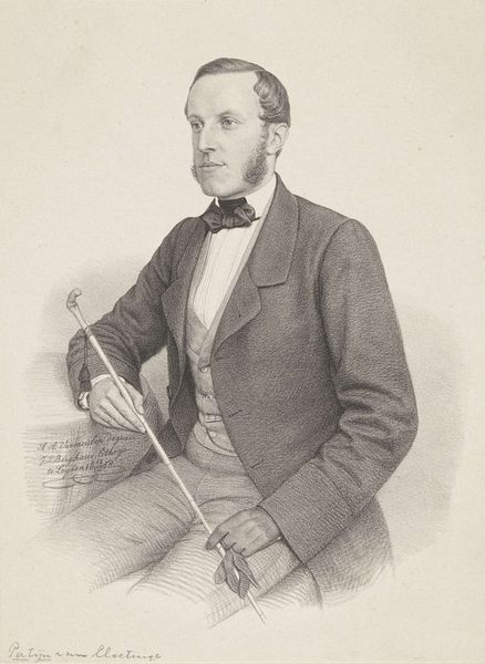 This portrait of an unknown man, possibly F.C. van der Hoeven, was made by Johann Peter Berghaus in the Netherlands in 1856. The sitter’s confident pose, smart suit, and carefully cultivated facial hair speak to the self-assuredness of the Dutch bourgeois classes in the mid-19th century. The inscription at the bottom, “Cognato amicissimo,” suggests the portrait was made for a close family member or friend. This work offers a window into the domestic lives of the Dutch middle class. At the time, Dutch society was undergoing a period of rapid industrialization and modernization. This portrait reflects the values of this new era. We see the influence of Dutch institutions in the subject's clothing and the conventions of portraiture employed here, like the sitter gazing confidently. The image presents a view of established, conservative Dutch society. Studying archives, letters, and publications from the period can help us better understand the man depicted and the world he inhabited. Art is always contingent on the social and institutional context in which it is made and viewed.