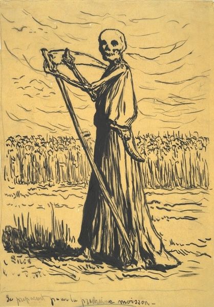 Elizabeth Catlett created this linocut, "In the Fields," sometime in the mid-20th century. As a print, its stark black and white contrast is achieved by carving away at a sheet of linoleum, then inking the remaining surface and pressing it onto paper. The method itself speaks to the graphic power and accessibility of printmaking. Linocuts can be produced in multiples and shared widely, making them a powerful tool for social commentary. Here, Catlett directs our attention to the labor involved in agricultural work. The figure stands firmly, her hands gripping a tool. The fields surrounding her, meticulously rendered with sharp lines, seem to stretch endlessly. The artist's technique—reducing form to bold, graphic elements—emphasizes the dignity and strength of her subject. The hard work and determination is etched into every line. It invites us to consider the human cost behind the food we consume, and to value the contributions of those who work the land. Catlett elevates an everyday scene to a powerful statement about labor, resilience, and social justice.