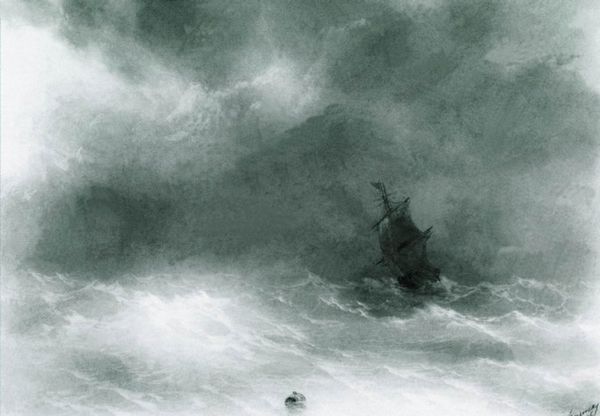 "Among the Waves" is an oil painting by Ivan Aivazovsky, a 19th-century Russian-Armenian artist renowned for his dramatic seascapes. Born Hovhannes Aivazian, his work reflects not only a mastery of light and motion but also his complex identity navigating Imperial Russian society. Here, Aivazovsky departs from traditional representations of the sea. Instead of a calm, picturesque scene, we are confronted with the raw, untamed power of nature. The waves, rendered in shades of deep blue and emerald green, crash with a force that feels almost palpable. Aivazovsky once said, "I am moved by nothing other than the desire to represent nature in all its glory." His words remind us of the emotional and experiential aspect of this painting; a sublime encounter with the sea's might. This painting speaks to our relationship with nature, but also to the powerful emotions—fear, awe, and respect—that it can evoke, issues still relevant today.