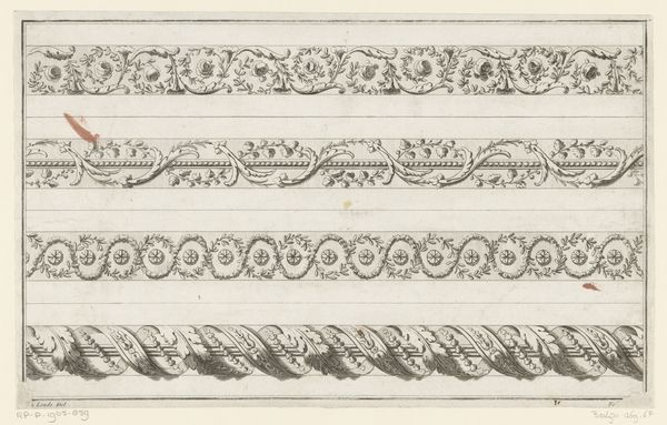 This print of two crown moldings was made by Augustin Foin in the eighteenth century. It depicts possible designs for the edges of furniture or other decorative purposes. The printmaking process is crucial to the appearance of this piece. As an engraving, the design would first have been incised into a metal plate. The plate is then inked, and the surface wiped clean, leaving ink only in the recessed lines. Paper is then pressed against the plate, transferring the image. You can see the crisp lines and fine details achieved through this technique. But why make a print of these designs at all? The answer has to do with the rise of industrial production in the eighteenth century. Prints like this allowed for the mass dissemination of design ideas, democratizing aesthetics, and creating a common visual language that fueled consumer culture. This was not just about art, but about the look of everyday life.