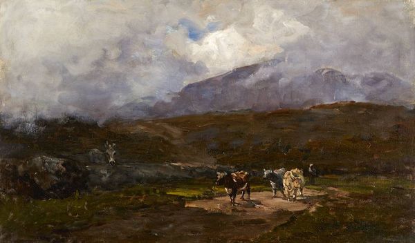 Hans Heysen made "The track to the farm" with oil paint in the early 20th century; you can tell he was really working the surface. There’s a great big hay bale dominating the scene, sitting there like a lumpy monument to the harvest. The texture! It looks like he mixed a little sand in with the paint to get that rough, dry feeling. And the way the light hits it—you can almost smell the hay. The whole thing is painted in these muted, earthy tones. Grays, browns, and greens that make you feel like you're standing right there in the field, breathing in the damp air. Now, look at the way he painted the track. Thick strokes, really digging into the canvas. It’s almost like he’s sculpting the mud. Makes you think about Van Gogh, doesn’t it? That same kind of raw energy, that feeling that the painting is alive.