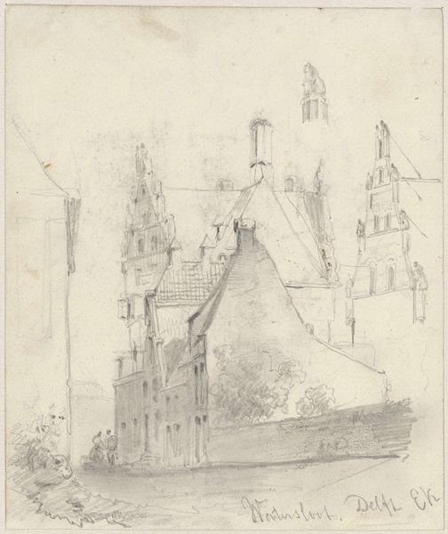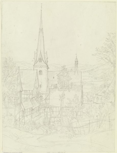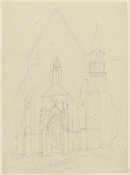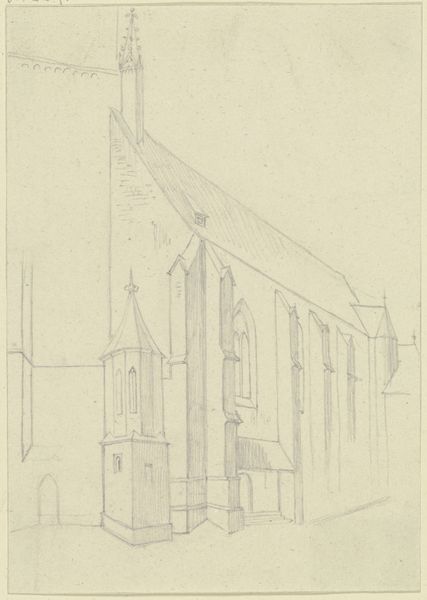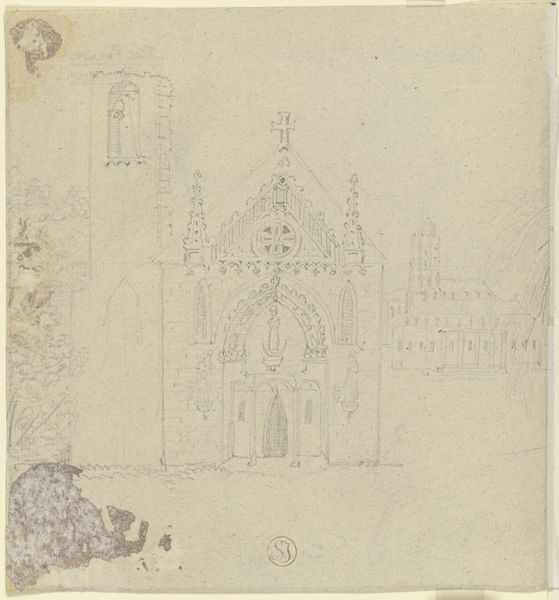 Johan Thomas Lundbye sketched *Kallundborg Kirke* with pencil on paper during a time of national romanticism in Denmark. Lundbye, deeply invested in Danish identity, often depicted landscapes and monuments central to the nation’s cultural heritage. This sketch offers us insight into Lundbye’s emotional and intellectual life. The looming church, rendered with delicate lines, dominates the composition. The lone figure standing in front of the building suggests a dialogue between individual and institution. Lundbye was part of a generation grappling with questions of faith, modernity, and national belonging. The choice to represent the church, an ancient structure, speaks to a longing for historical continuity. However, the sketch also subtly questions traditional representations by focusing on the experience of an individual encountering the church. It invites us to consider how personal identity is shaped by monumental structures. The church remains a symbol of collective memory and a space of personal reflection.