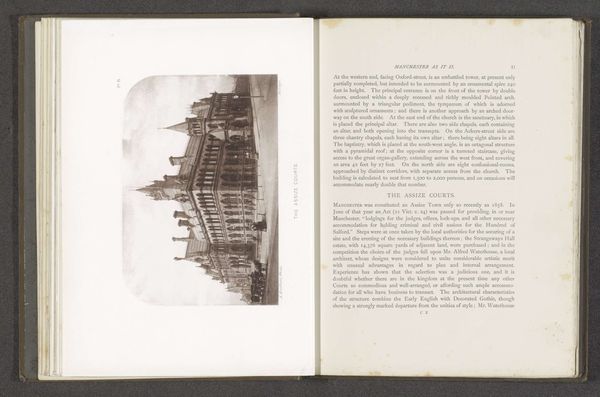 Editor: Here we have "Gezicht op de Royal Exchange in Manchester," a photograph by Alfred Brothers, dating from before 1878. It’s an albumen print in an album. I’m struck by the starkness of the building; it almost seems to loom. What do you see in this piece? Curator: What immediately captures my attention is how this image documents the industrial revolution’s impact through the materiality of this new financial center. Consider the physical labor involved in constructing the Exchange itself and in producing the photographic print. What raw materials were extracted and transformed? What kind of working conditions made that possible? Editor: So, it’s less about the aesthetics of the building itself, and more about what the photo represents? Curator: Precisely! Think about the very act of creating an albumen print. Egg whites were used to coat the paper, a rather laborious and delicate process. It wasn’t mass reproducible like photography is today. It raises the question: who had access to such a process? What social class are we seeing represented here through both labor and luxury? Editor: That’s a fascinating angle. I hadn’t thought about the production process as a reflection of societal structures at the time. Curator: And beyond the photograph, what function did the Royal Exchange serve? How did it facilitate and regulate the flow of capital, and what were the social consequences of this activity in Manchester? How were the labor practices inside related to practices on the outside? Editor: It’s interesting to see the architecture, the photography, and the economics all intertwined. Curator: Yes, this photograph isn't just a document of a building, but a testament to a particular moment in industrial history and a complex system of labor and materiality. We can discuss how consumption impacts labor, going far beyond this image alone. Editor: I learned a lot about viewing the context that informed it, rather than the image itself.