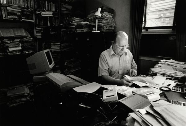 Gordon Parks made this black and white photograph of Samuel Barber in New York. I love the tonal range of the image, it seems to pick up the light in the way that painting does, almost as if it was built up in layers. Barber is caught looking to the side, towards us, with his lips pursed, in front of a large-scale backdrop of a lightning storm. To the right of the frame, Parks includes a cascading ivy plant, positioned on a shelf in front of a dark, flat surface. There’s a stark contrast between Barber’s soft skin, the smooth paper he holds, and the roughly textured foliage. It's as if the image is picking up on those dichotomies that appear in Barber’s work, between tradition and modernity, between romance and brutality. Parks was a master of using light and shadow to create mood and depth, something we also see in the work of Irving Penn. These photographers shared a collaborative, experimental approach, using unconventional settings and props to capture the essence of their subjects. Like a painter, Parks composes the image so that the different elements add up to a feeling.