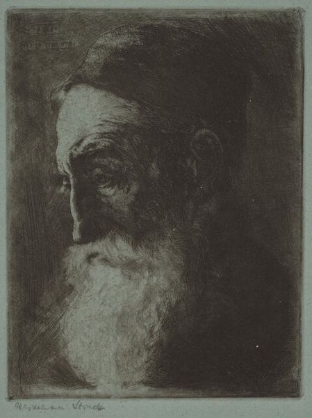 Editor: This is Edvard Munch’s 1897 pencil drawing of Stèphane Mallarmè. The heavy use of graphite gives it such a dark, almost brooding presence. What resonates with you most about it? Curator: The portrait itself feels almost like an icon, wouldn't you agree? Munch captures Mallarmé as a figure laden with meaning. Notice how the dense hatching around the face creates this sort of halo effect. What emotions does that evoke for you? Editor: It feels reverential, almost…as if Mallarmé is a saint of poetry. Is that what you mean by the "icon" feeling? Curator: Precisely! Consider the Symbolist movement, and Mallarmé's pivotal role within it. The Symbolists sought to evoke subjective emotions through imagery and allusion, so what better way to portray that than with a figure made symbolic through suggestive rather than literal lines? Munch isn’t just drawing a man, but drawing the essence of symbolism itself. Editor: So the visual language itself is symbolic… interesting. Is that why Munch chose to use such stark contrast and heavy lines? Curator: Partly, yes. But I wonder, too, about the cultural weight of portraiture at the time. Photography was emerging, but the hand-drawn portrait still held a unique power—a perceived connection with the subject. Did that relationship elevate the sitter? What does this drawing then tell us about both Mallarme, and the public's need for representations of this cultural figure? Editor: I hadn't thought about the impact of photography...it makes this drawing feel like a much more intimate, interpretive act. Curator: It truly is. Hopefully more visitors now appreciate the rich exchange captured between artist and subject, and between a cultural figure and his world, in these dark suggestive lines. Editor: This really makes you think about portraiture in an entirely new way. Thanks for sharing your perspective.