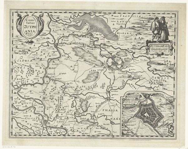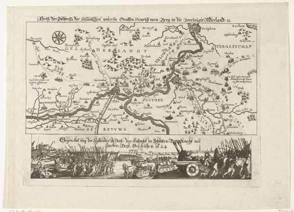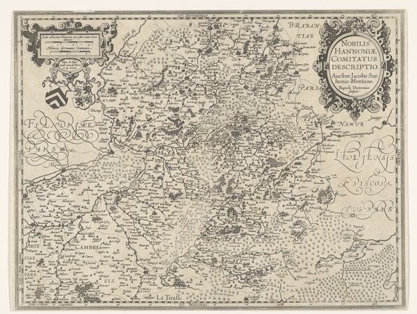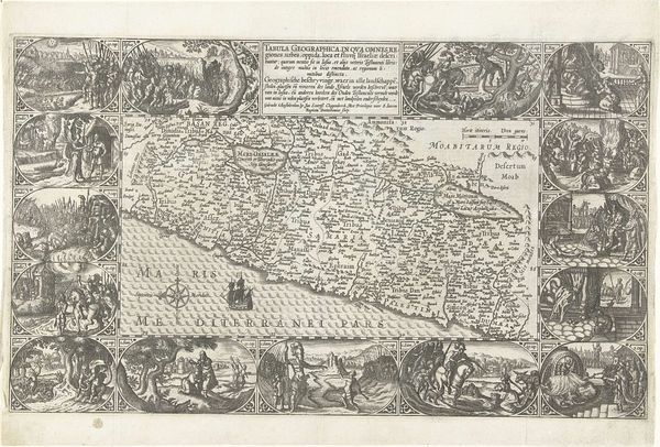 Curator: This piece, "Kaart van de landen in het Noord-Oosten van de Middellandse Zee," created around 1603-1604, comes to us from Baptista van Doetechum. What are your initial thoughts on this map? Editor: The density is immediately striking! It feels almost overwhelmingly detailed. There's an incredible texture created by the dense engraving, lending a sense of industrious labor to its creation. It makes me wonder about the purpose for something so meticulously wrought. Curator: It’s not merely decorative. Consider that this was the age of exploration, colonialism, and emerging trade routes. Maps were incredibly important political tools. They dictated ownership, facilitated trade, and documented conquests. How might the choice of material—engraving—speak to its intended function and audience? Editor: Precisely. Engraving offered precision, repeatability, and the potential for mass production. Unlike a unique painted map, this could be disseminated, serving state or commercial interests. Look at the way they’ve incorporated miniature biblical scenes around the perimeter—clearly meant to legitimize European presence in the region, even divinely sanction it. Curator: Good eye! That is where we see the politics of imagery really shining through. Note how they weave these biblical narratives into the very fabric of cartography. We might even examine this print as a precursor to modern propaganda. Editor: It forces us to question: who was this map intended for? And how did it shape their understanding of the world and their role within it? Was it meant to inform, or to inspire… colonization? The sheer amount of labor etched into it demonstrates a serious investment in shaping that vision. It serves a stark reminder that "objective" representation is never really objective. The production process itself imbued it with ideology. Curator: Yes, it powerfully illustrates how an artifact, ostensibly about geography, became a powerful tool for solidifying certain viewpoints and, shall we say, geopolitical narratives. Editor: Indeed. Analyzing it from both angles reveals the complex intertwining of artistic production and its influence on shaping a worldview. It goes beyond mere wayfinding; it's about power. Curator: Precisely, a demonstration that things are more than simply surface level in production and more than an item on display in an exhibit. Thank you.