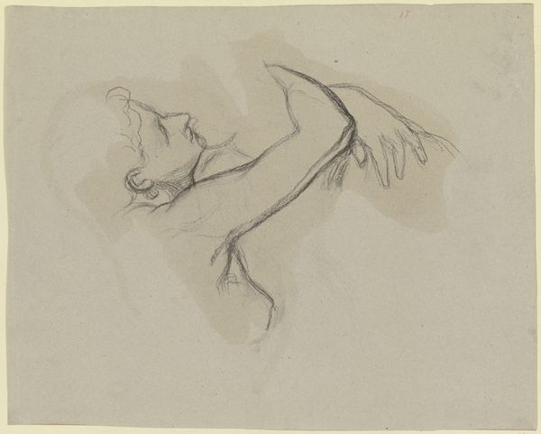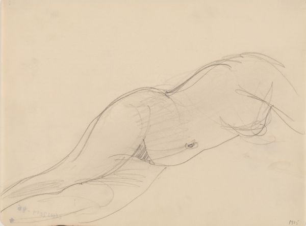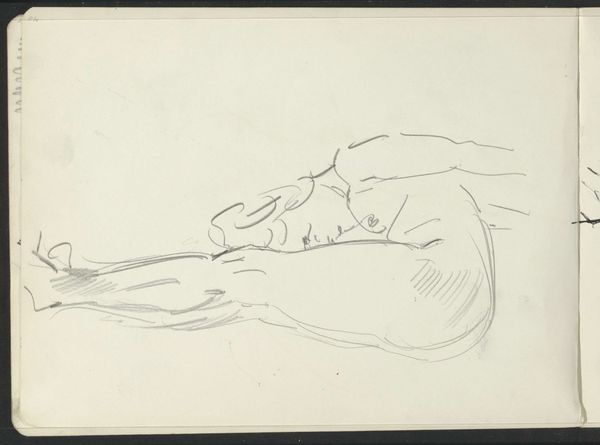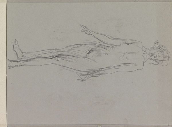 Isaac Israels made this sketch of a female nude with graphite, likely in the late 19th or early 20th century. In that era, the art academy was the dominant institution shaping artistic production. Male artists routinely studied the nude female form, while female artists were often excluded from such studies, or permitted only to draw from clothed male models. How might such institutional practices have influenced the way the nude body was represented? What are the politics of imagery when it comes to gender? Does this sketch challenge or reinforce social norms about female representation? The loose lines and informal composition of the drawing suggest a casual and intimate scene, reflecting the rise of impressionism in Europe during that time. It's worth investigating the artist's personal history: were his progressive views about the social role of art? Such questions about gender and representation are essential for historians in understanding the cultural meaning of art. Primary sources such as letters, diaries, and institutional records, can also reveal the social and political contexts in which art was made.
