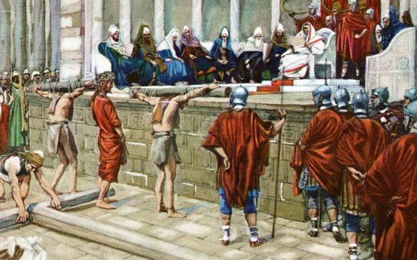 Editor: James Tissot's oil painting, "Simon the Cyrenian Compelled to Carry the Cross with Jesus," created between 1886 and 1894, depicts a powerful, chaotic scene. The composition is dominated by the figure of Christ and the large wooden cross. What's striking to me is how Tissot stages this event; it feels less like a divine moment and more like a political spectacle. How do you interpret this work in terms of its historical context and intended audience? Curator: It’s perceptive of you to notice that political dimension. Tissot, a French artist, painted this scene after extensive travel to the Middle East. He aimed for historical accuracy, challenging previous Western interpretations of biblical narratives. Consider the late 19th century: Western colonial powers were expanding their influence in the region, shaping cultural perceptions. How do you think Tissot’s attempt at realism might be seen as a reflection of, or perhaps a commentary on, that dynamic? Editor: That's interesting. Maybe his attempt to show a "real" version of the event also served to legitimize the European presence in the Middle East at the time? By making it seem authentic, it almost gives a visual authority to their presence. Curator: Precisely. And what does the focus on Roman soldiers, their armor and organization, communicate? The narrative subtly shifts towards the power structures that were, at the time, reasserting themselves in different forms across the world. The visual weight given to the soldiers can be interpreted as glorifying power at the expense of the suffering of Jesus and bystanders. How does it strike you that Tissot exhibited these religious paintings, including this one, to popular acclaim in secular venues, like the Parisian Salon? Editor: It's almost as if he was turning religious suffering into a kind of imperial triumph, validated in these secular spaces. Curator: Exactly. It gives us a different lens to view it and see it less as a purely religious image, but rather something interwoven with social and political climates. Thanks for those fresh observations. Editor: Thanks to you; I see Tissot’s efforts with newfound depth!