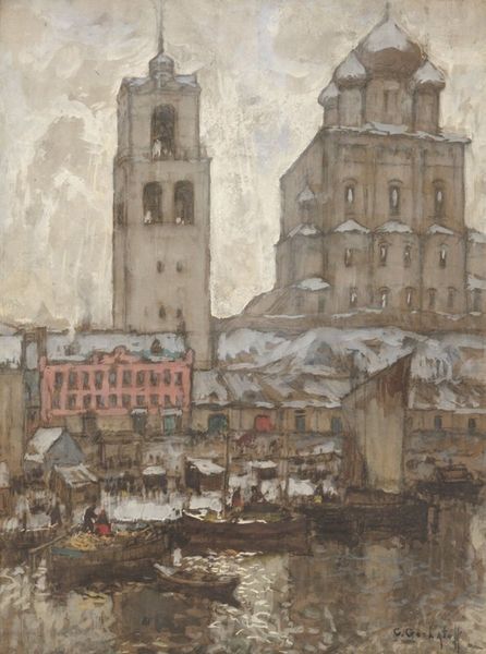 Konstantin Gorbatov made this painting of Pskov with oil on canvas. Gorbatov emigrated from Russia to Italy then Germany in the 1920s, so it’s interesting to consider how this painting represents his attitude toward his homeland. Pskov is one of Russia’s oldest cities, with a history stretching back to the medieval period, during which it was an important trading hub. The Orthodox cathedral in the background reminds us of the deep historical links between Russian identity, the church, and the state. In the foreground we see a busy river port with a marketplace, suggesting a more secular side to Russian life, with the wooden stalls and colorful buildings giving a sense of warmth and vitality. To understand more about the artist’s life and intentions, it would be helpful to look at his personal papers and letters to understand his beliefs about Russian culture. His artistic training in St. Petersburg and his relationship to the art establishment of his day would give further clues.