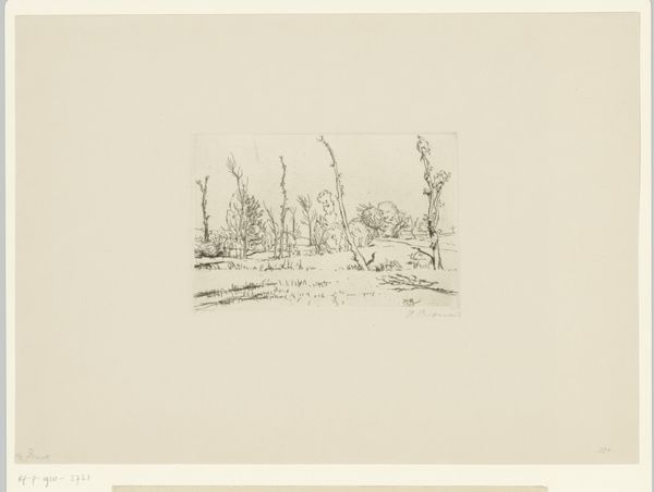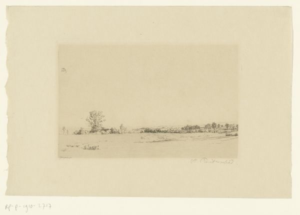 Heinrich Reifferscheid made this print called Waterachtig landschap, using etching, a printmaking process with a long history. An etcher coats a metal plate with a waxy, acid-resistant substance, then scratches an image into that coating. The plate is then immersed in acid, which bites into the exposed metal, creating the lines that will hold ink. The longer the plate sits in the acid, the deeper the lines become, resulting in darker tones in the final print. The plate is then inked, wiped clean, and pressed onto paper, transferring the image. Reifferscheid was known for his landscape etchings, often depicting scenes from the Lower Rhine region. The subtle tonal variations achieved through etching lend themselves well to capturing the atmosphere of these landscapes. The lines evoke a sense of quiet and stillness, reflecting a close observation of the natural world. While etching is a mechanical process that allows for multiples, each print retains a handmade quality, a direct connection to the artist's hand and eye. This challenges us to reconsider what we mean by craft and fine art.