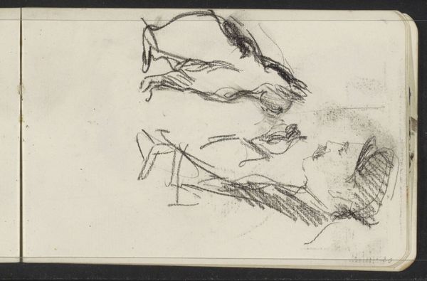 Editor: This is "Head of a Horse," a pencil drawing by Carel Adolph Lion Cachet, dating from around 1895 to 1900. It's at the Rijksmuseum. I'm struck by how simple it is, almost ephemeral. What stands out to you about it? Curator: It's compelling because it lays bare the mechanics of image creation. Notice the graphite itself – the visible strokes, the smudging, the paper texture. It shouts “process” over “product.” This was not about idealized representation, but a working through the subject, perhaps studying equine anatomy. Think about Cachet's access to materials; pencils were becoming increasingly available, changing artistic possibilities for sketching and preliminary studies. How might broader societal shifts towards industrialization impacted Cachet's practice? Editor: That makes sense. The sketch-like quality deemphasizes the "art object" in favor of... well, the act of sketching. So, this would make "Head of a Horse" more about labor and production, than... pure skill, or the essence of a horse. Curator: Exactly. Consider the role of drawing at this time. Was it considered 'lesser' than painting? And who was it for? If Cachet saw artistic merit in this stage, despite it being deemed preliminary, we can see his subversion of social structures related to artistic creation. Also, if we considered how images of animals were used at the time, especially of labor animals such as horses, what connections to social changes do you notice here? Editor: Fascinating. I had thought of it as a simple study, but thinking about it in terms of the labor of art and the materials themselves shifts the entire understanding of it. Curator: It asks us to reconsider value. What makes a piece worthy of our attention – the finished product or the record of its making? This is key in the materialist approach. Editor: Thanks; thinking about the process and materials really brings a new depth to what I initially saw as a quick sketch. Curator: Likewise, understanding your response is really helping my own research too. Thanks.