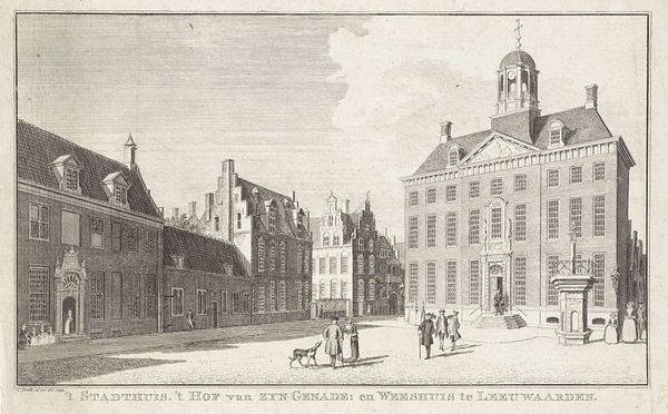 Jacob Folkema created this print titled "View of the Old Town Hall in The Hague" in 1742. At this time, the Dutch Republic was a major European power, its cities centers of trade and culture. The town hall, prominently depicted, symbolizes civic pride and governance. Yet, look closely at the figures populating the scene, their activities and attire reflect the social hierarchies of the time. The elite, strolling with leisure, contrast with the vendors and workers who animated the square. How does Folkema's precise rendering of architecture and social life invite us to reflect on the values and power structures embedded in urban spaces? Does this depiction perpetuate traditional representations of class and gender, or does it offer subtle critiques of the social order? Consider how the town hall, in its imposing grandeur, serves as both a symbol of collective identity and a reminder of the authority that shapes daily life.