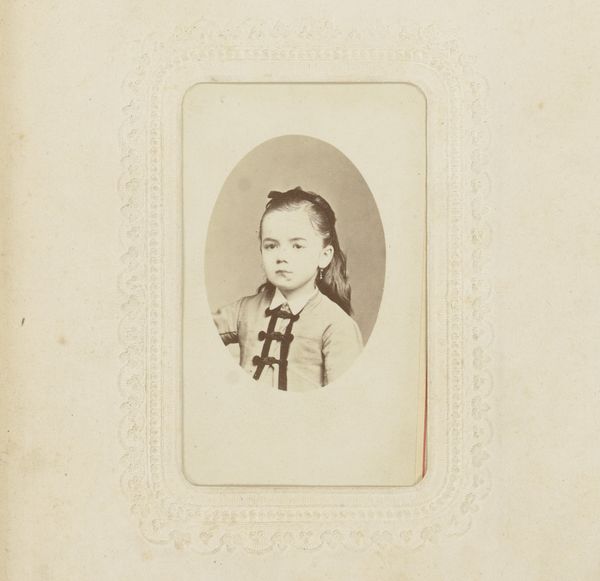 This small portrait was created by P. Vlaanderen & C. van der Aa. It’s a photographic print, carefully mounted within an album page. What might seem like a straightforward image of a girl is actually a complex negotiation between art, craft, and the burgeoning industrial processes of photography. In the 19th century, studios like Vlaanderen & van der Aa were essentially factories, employing skilled technicians to operate cameras, mix chemicals, and meticulously print and mount photographs. Consider the labor involved: from posing the sitter to developing the image, each step demanded precision. The photograph’s sepia tone, the texture of the paper, and the ornate frame all contribute to its value as a crafted object, a treasured memento within a family album. Looking closely, we can see the marks of its making, and consider the photograph not just as a picture, but as a product of its time, reflecting the changing landscape of labor, technology, and social status.
