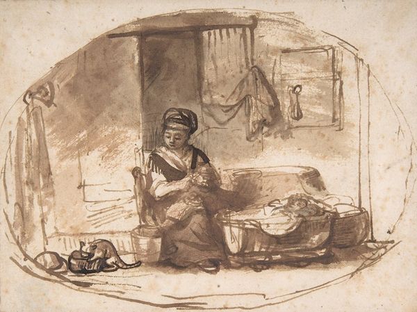 John Frederick Lewis created this undated watercolor painting, titled Arab School. The composition presents an interior scene, dominated by earth tones, browns, and muted blues, establishing a tranquil atmosphere. Lewis's formal arrangement divides the schoolroom into distinct zones, from the concentrated students to the authoritative teacher, using light and shadow to emphasize the hierarchical structure. Note how the geometric forms of the desks and architectural elements provide an underlying structure, emphasizing the order and discipline of the educational setting. This calculated arrangement and subdued palette underscore the painting’s engagement with Orientalist themes, reflecting a European fascination with the Middle East. The texture created by the watercolor technique adds depth, inviting us to consider how Lewis constructs a narrative about knowledge, power, and cultural exchange within the semiotic space of the classroom. The artist deliberately shapes our perception and interpretation.
