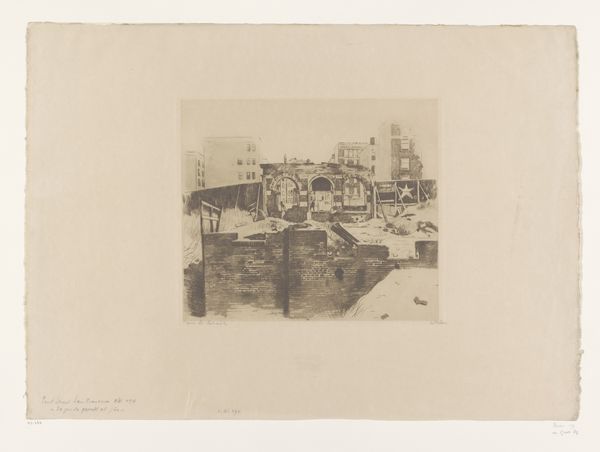 Curator: Vallotton's print, "Gezicht op de Pont Neuf te Parijs met boten," created in 1931, offers a detailed study in monochrome using etching. What are your initial thoughts looking at this particular Parisian scene? Editor: Well, the overall effect for me is hushed and still. The city almost feels asleep. Is it the light, or lack thereof, contributing to this stillness? It's compelling. Curator: Absolutely, the light plays a vital role. Vallotton's realistic style and monochromatic choice distill the scene to its essence. Notice the heavy detail in the reflections in the water, contrasting with the lighter treatment of the buildings beyond. Water always signals change. What do you make of that juxtaposition here? Editor: It’s interesting, this tension between a city, symbolizing permanence and those transient vessels. There's a melancholic air, as though the boats embody the fleeting nature of time, even as Paris stands immutable in the background. Also the Seine river holds its cultural memory! Curator: I like your reading of permanence against transience. I do wonder if the boats hint at a deeper metaphor—perhaps life navigating through time beneath the bridge's enduring gaze? Paris is one of Europe’s truly iconic capital cities and these watercraft, for me, serve almost like personal icons that represent the lives of her citizens. Editor: The boats certainly feel emblematic; their forms simple and sturdy and also somehow fragile, each telling stories within the broader narrative of the cityscape. I think of these shapes of boats themselves like primal symbols which go back to humanity’s first journeys! The light on their surfaces give that narrative depth! Curator: A fitting conclusion, this brings us nicely to considering how Vallotton captures a moment suspended between industry and stillness. Thank you. Editor: It leaves you contemplating the echoes of stories that linger in such spaces. Thank you as well.