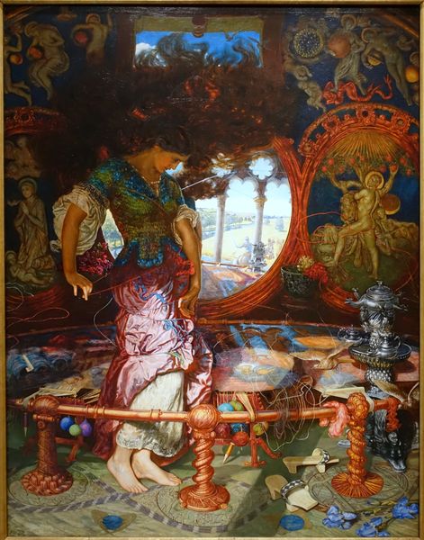 Mariano Fortuny Marsal made this oil painting on canvas, entitled "Arabe Delante De Un Tapiz". The artwork is dominated by a tapestry – a textile woven with painstaking effort, thread by thread. This labor-intensive craft is set in contrast to the relative ease with which Fortuny applied his paint, imitating the tapestry’s patterns in broad strokes. The very materiality of the paint contributes to this effect, thick and sensuous compared to the flat surface of the woven textile. Consider the social context: tapestries such as these were luxury goods, highly prized and circulated as commodities. Fortuny, by taking the tapestry as his subject, engages with this history of trade, labor, and value. The artist here is not just depicting a scene, but also acknowledging the complex economic realities that underpinned his own artistic practice. Looking closely at the material, making, and context of this painting, we begin to see the interconnectedness of art, craft, and commerce. It challenges us to reconsider the distinctions between high art and the skilled traditions that often go unacknowledged.