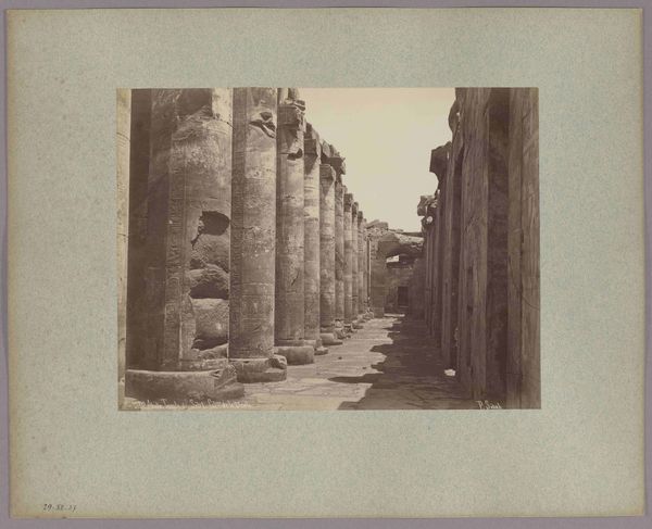 This photograph captures the Ramesseum in Thebes, Luxor, and was taken by Maison Bonfils. It's important to recognize that while we see an image of ancient Egypt, it is mediated through the lens and perspective of 19th-century European photographers. The act of photographing and documenting ancient sites like this was often tied to colonial interests and power dynamics, where European nations sought to map, study, and sometimes control territories and histories outside of Europe. This photograph is a testament to the fascination with the ancient world, but we must also reflect on who gets to tell these stories and for what purposes. Think about what it means to view such a monumental site through the eyes of those who came to document rather than those who lived and built it. This photograph not only shows us a ruin, but invites us to consider whose history is being preserved and how.