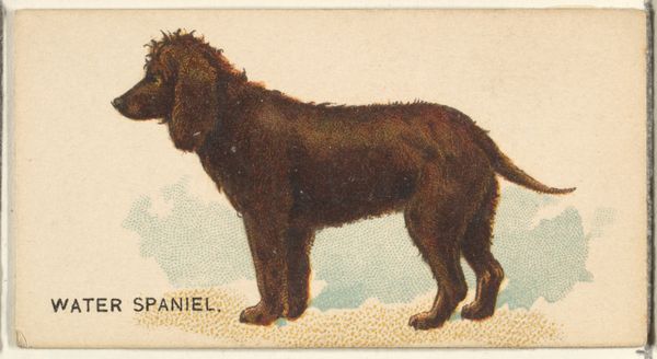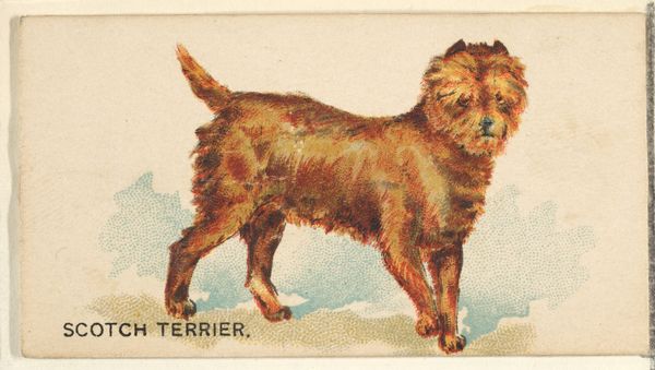 Editor: Here we have "Irish Terrier" from the Dogs of the World series, made around 1890 by Goodwin & Company, using coloured pencil and print. What strikes me is that it's clearly meant to be reproducible, a commercial image rather than a singular artistic creation. What can you tell me about this from an art history perspective? Curator: Well, right away we must consider the context: a cigarette card. Think about the material conditions. This wasn't meant for a museum wall, but as a collectable inserted into a product associated with labor—tobacco. Consider the cigarette itself, its mass production and consumption... then this card becomes a trace element in that larger economic engine. Editor: That makes sense. So the artistry is secondary to its function as a marketing tool? Curator: Not entirely. Look at the coloured pencil work. It mimics fine art portraiture but streamlined for rapid production. The artistic labor involved in creating the original image, and then reproducing it en masse. Where does 'art' truly reside, in the original drawing, the printmaking process, or the accumulation of these cards by consumers? The real subject becomes not just the dog, but commodity culture itself. It transforms this seemingly simple picture of a dog into something that reflects broader societal structures and capitalist ambition. Editor: So, even in something as seemingly simple as a cigarette card, we can unpack ideas about labor, production, and consumption. I never thought of it that way! Curator: Exactly. Examining these seemingly minor objects illuminates the very processes that shape our understanding of value. They show how art and labor are always intertwined.