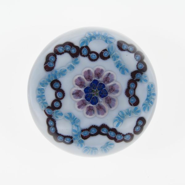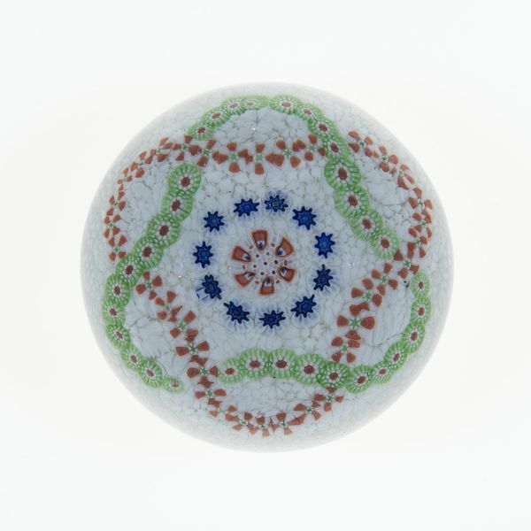 This paperweight was made by Baccarat Glassworks, and it epitomizes the kind of skill and material control that glass demands. It's made through a complex process. Tiny glass rods are bundled together, heated, and then stretched. When sliced, these reveal intricate floral patterns. These are then arranged on a surface, and molten glass is poured over them, encasing the design. The whole thing is cooled slowly to prevent cracking. The visual effect is dazzling. The glass acts as a lens, magnifying the delicate patterns within. Light plays through the piece, bringing the colors to life. In its time, this kind of object represented a convergence of scientific understanding, industrial production, and artistic skill. It speaks to the cultural moment when manufacturers were focused on glass production, an era characterized by technological advancement and intense competition. When you look at this paperweight, you are not just seeing a pretty object, but a testament to human ingenuity. The glass, the patterns, and the making process are all equally important to its significance.