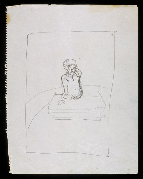Editor: Here we have Francis Bacon's "Figure Crawling," an undated drawing on paper held at the Tate. It's a quick sketch in blue, and the figure seems trapped, almost animalistic. What do you make of it? Curator: It's like peering into the raw nerve of existential dread, isn't it? The figure, scrawled and vulnerable, is confined within Bacon's signature cage, amplifying the feeling of isolation. Do you sense a kind of desperate energy, a will to break free? Editor: I do, but it also feels futile. Like a nightmare you can't wake up from. Curator: Exactly! Bacon taps into that primal scream within us all, the struggle against the boundaries of our own existence. A potent, if unsettling, reminder of our shared human condition. Editor: It's certainly given me a lot to think about. Thanks for sharing your insights! Curator: My pleasure! It's always rewarding to see art spark such thoughtful reflection.