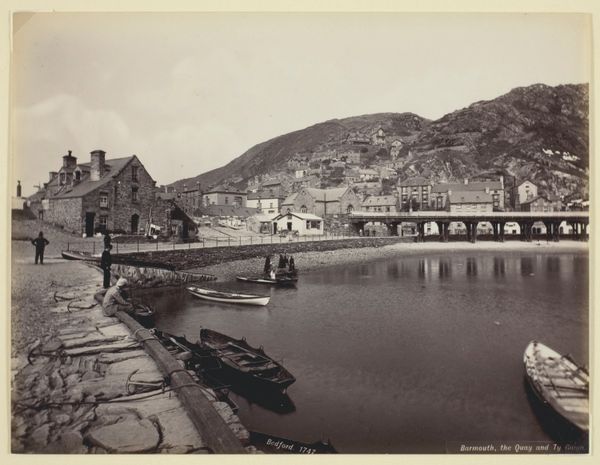 Editor: This is Edouard Baldus's "Vienne, St. Colombe," taken between 1860 and 1862. It’s a photograph, and what strikes me is the way it captures this seemingly mundane urban landscape, almost like a documentary approach. How would you interpret this work? Curator: Look at the surface. Notice the rich, warm tones achieved through the photographic processes of the time. Baldus was deeply engaged with the materiality of photography itself. But it's not just about aesthetics. He was commissioned to document infrastructure projects during a period of intense modernization. Editor: So, you’re saying the choice of subject matter reflects a specific agenda? Curator: Absolutely. Think about the social context: France was undergoing massive transformations. The railway development and construction created job opportunities, and changed lives. Baldus isn't simply recording a scene; he's participating in constructing a narrative of progress and national identity through depicting the material changes that allowed such transformation. The materials photographed, and the photographic materials themselves speak to the social and economic shifts of the period. Editor: I see! It's interesting how you point out the relationship between materials represented and materials used for representing, Baldus’ choice to focus on infrastructure really points to how it changed how French citizens related to their nation. Thanks for explaining this work through a different lens! Curator: My pleasure. Reflecting on the way labour and production come into play in photographic works is something I like to share.