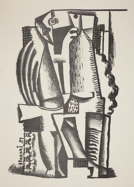 Fernand Léger made this drawing, Composition aux Deux Personnages, out of crayon, around 1920. Look at how Léger creates these solid, chunky forms, almost like architectural blocks or machine parts, and softens them with hatched crayon shading. It's about making an image, sure, but also about how you make an image. You can almost feel the grain of the paper under the crayon. See how the shading isn't smooth, but built up from lots of tiny, parallel lines. It's a very physical process, layering on the marks to build up tone and volume. Then, there are other parts where he digs in, pressing hard to create these intense dark areas. Notice the line that runs down the center of the figure’s leg; it suggests an edge and a light source but also a kind of division. Léger’s work has some affinity with Picasso and Braque, but he also looks forward to artists like Philip Guston, who find a way of creating a personal language out of these constructed forms. It reminds us that art isn’t just about what you see, but what you *feel* when you see it.