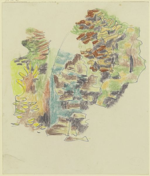 Editor: Right now we're looking at "Felsabhang mit Bäumen bei Nemi," or "Rocky Slope with Trees near Nemi," a watercolour, tempera, and chalk drawing on paper by Johann Nepomuk Rauch, from 1845. The tones are muted but quite warm, making the composition seem calm and contemplative to me. How do you interpret this work? Curator: For me, this piece speaks to the artistic spirit of its time. Artists were eager to connect with nature and translate their experiences directly onto paper. The artwork feels almost like a diary entry. Editor: I see that. The setting gives off those "Italian countryside" vibes that were a huge draw in that period. Did the location influence the artist's process? Curator: Absolutely, the setting had to have been crucial, beckoning him into the open air. Rauch probably executed this drawing on-site, trying to capture the scene's immediacy through watercolor and chalk, like a sensory journal. Can you see that quality of immediacy in the work's quick strokes? Editor: Definitely. The looseness creates this sense of being *in* nature, not just viewing it from afar. Were these on-the-spot landscape studies typical at the time? Curator: Precisely. They captured fleeting moments and atmospheric conditions with a fresh perspective and that authentic, unvarnished observation was the essence of Romanticism and naturalism melding into a study that captured the emotional intensity, as if he simply was. Editor: It’s like glimpsing a page torn straight out of the artist's travel sketchbook. Thank you, I feel I appreciate the artwork better, with a feeling that there is so much more to learn. Curator: It was my pleasure, what a vivid experience this turned out to be.