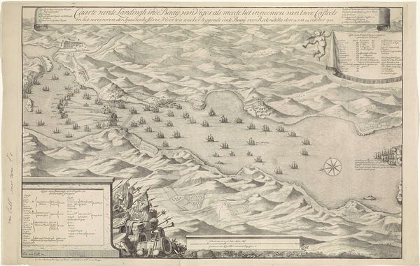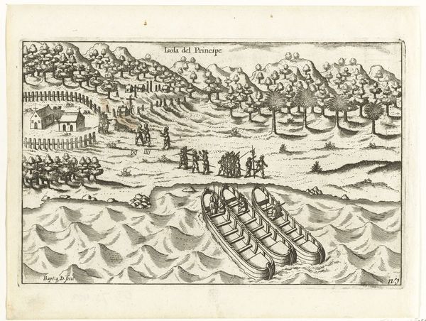 This anonymous engraving, made in 1615, depicts the arrival at Mocha Island. It offers a fascinating insight into the early stages of Dutch colonialism. The image creates meaning by contrasting the orderly arrival of ships with the chaotic activity on the island. Consider how the scene reflects the cultural encounter between the Dutch and the indigenous population. It was made during the height of the Dutch Golden Age, driven by maritime trade and colonial expansion. The focus on Mocha Island, off the coast of present-day Chile, highlights the strategic importance of such locations in the Dutch trading networks. This print is a record of colonial ambition, but it also demonstrates the key role of visual imagery in shaping European perceptions of the wider world. Further research into Dutch East India Company archives and travelogues of the period will reveal more about the economic and social motivations behind such expeditions. Through this we can better understand the role of art in promoting and shaping colonial expansion.
