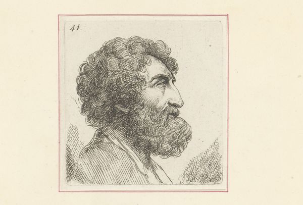Editor: Here we have Stefano della Bella's "Head of a bearded old man" from around 1641, created using etching and engraving. The intricate line work really captures the man's aged features. What's your interpretation of this portrait, considering the socio-political context? Curator: It’s important to consider the Baroque era, and della Bella’s position within court culture. He worked for the Medici family, known patrons of the arts who utilized artwork for propaganda and self-fashioning. Is this then a truthful study of old age, or perhaps an idealization, aligning with ideas about wisdom and authority, circulated through imagery? Editor: That’s fascinating. I hadn’t thought about it as potentially strategic image-making. So, even in what seems like a simple portrait, there’s a layer of political intention? Curator: Potentially, yes. Etchings like these circulated widely, influencing perceptions beyond the immediate court. Also, note the laurel wreath. In what contexts would that symbol be familiar to viewers? It is a signal, and part of the visual vocabulary of power and status. The distribution of these prints played a part in constructing ideas about leadership. Editor: So, the choice to depict the man with the wreath is deliberately alluding to something beyond just a man. What did that signify at that time? Curator: The laurel wreath was a symbol linked to ancient Rome, to emperors and military victors, thus royalty. Its appearance in portraits associates the sitter with those historical ideals of power, which in turn elevates his stature and the family that might commission such works. We have to think of the cultural framework informing viewers at that time. How would this image be *read* by its intended audience? Editor: I see now. The portrait then functions almost as a kind of branding. Thanks, this really broadened my understanding. Curator: Indeed. Examining art within its historical, social, and political environments can reveal fascinating aspects we might otherwise miss.