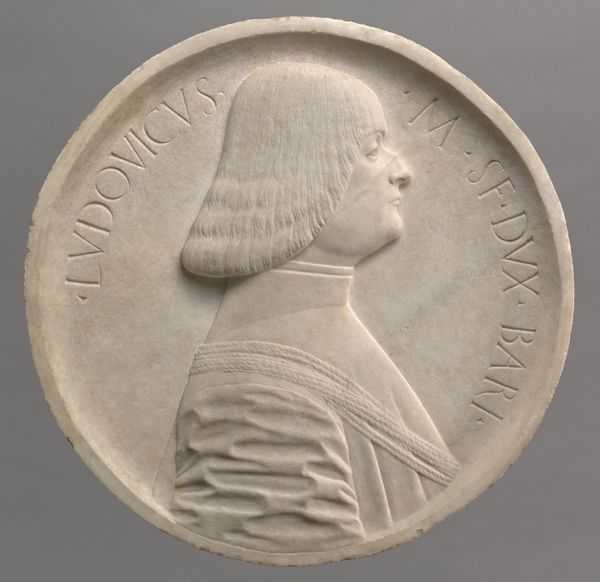 This is a marble medallion portrait of Willem Frederik George Lodewijk, later King Willem II. Carved by an anonymous artist, its circular form and cool, pale materiality invite a sense of classical order. The artist employs the visual language of Neoclassicism, a style that looked back to ancient Greece and Rome for its aesthetic ideals. We see this in the clean lines and the restrained elegance of the portrait. Notice how the relief is subtly modeled, creating depth and shadow with minimal surface disruption. The effect is one of controlled power, the very essence of royal portraiture at this time. The cool abstraction of marble lends the portrait a timeless quality, as though the sitter is elevated beyond the flow of ordinary time. This is more than just a likeness; it is an assertion of power, expressed through the enduring language of classical form.