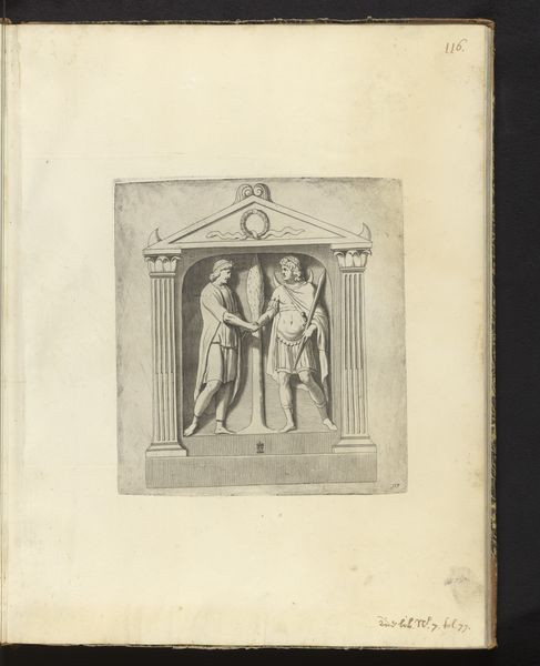 Editor: This is "Bas-relief with two Vestal Virgins," an engraving done between 1636 and 1647 by Valérien Regnard. It’s quite a detailed print. What strikes me is the very precise rendering of fabric, yet everything is simplified, classical. How would you approach interpreting this piece? Curator: From a materialist perspective, let's consider the context of printmaking during this period. Engravings like this facilitated the dissemination of classical imagery and ideals. What impact did these prints have on the broader culture? Editor: Well, reproductions would have been more accessible, perhaps influencing taste and architectural design? Curator: Exactly. This print acted as a commodity, traded and collected, spreading particular aesthetic and social values related to antiquity. Notice how the intaglio technique itself allows for the fine lines necessary to capture the details, how this production method might have standardized or formalized perceptions of classical beauty, even altering traditions through mass replication. Editor: That's fascinating, considering that it is both art and commodity! Do you think the artist’s labor in producing this, carefully engraving the plate, influences how we should value the print today? Curator: Absolutely. We tend to focus on iconography – Vesta, the virgins – but overlooking the labor, the sheer skill and time required to produce this. We could argue the true subject of the print is this skill, labor and material process made available for circulation. Editor: It's a different way to see it. Considering this print as both image and object changes my view on how art is created and its broader function in the world. Curator: Precisely! Hopefully this will affect how you continue to assess the materiality and social conditions of artistic production.