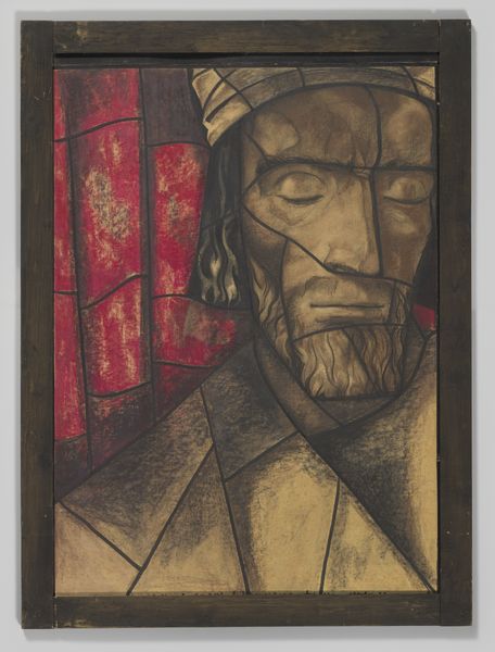 Richard Nicolaüs Roland Holst made this design for a stained-glass window for the Utrecht Cathedral in the Netherlands, using chalk and graphite. Holst was a socialist artist, who believed that art had a public role. Here, he has designed a monumental image for a religious space. The face is divided into sections, as though it were already part of the leaded window. We know from historical sources that Holst was interested in medieval art and the way that it could convey spiritual meaning to a mass audience. Looking at the archives of the Utrecht Cathedral might tell us more about the subject of this window and how it relates to the building’s history. It’s likely that Holst wanted to connect contemporary Dutch society with its medieval past, using the cathedral as a public institution.